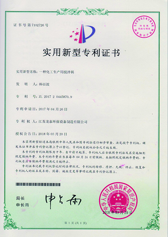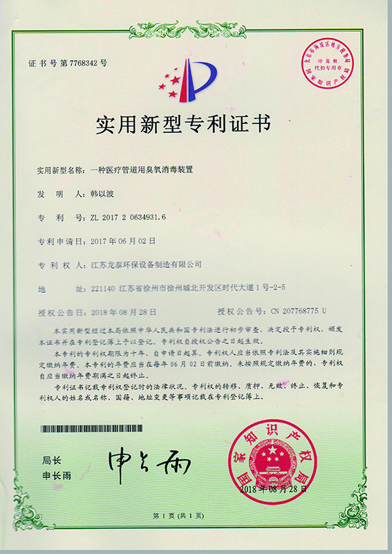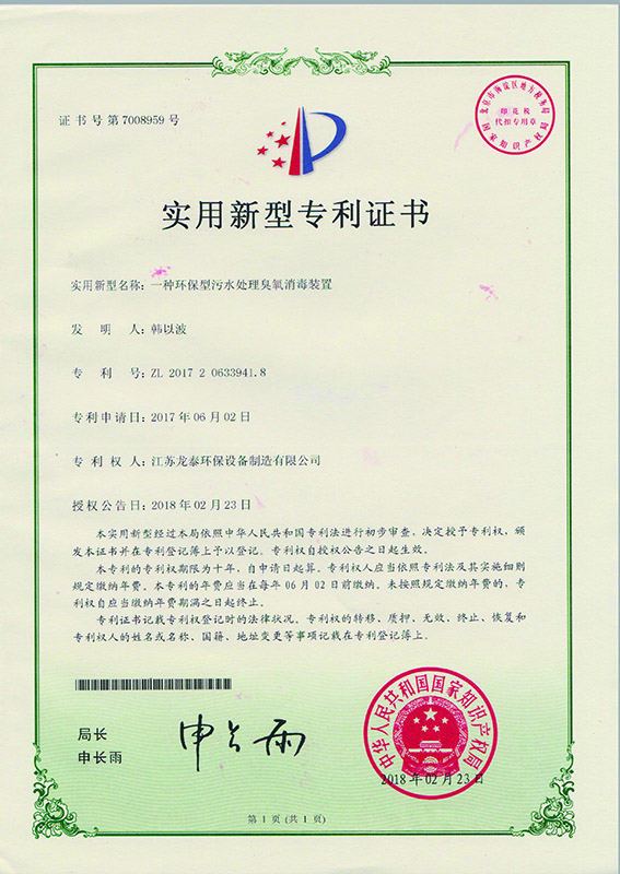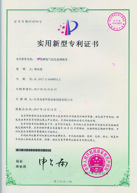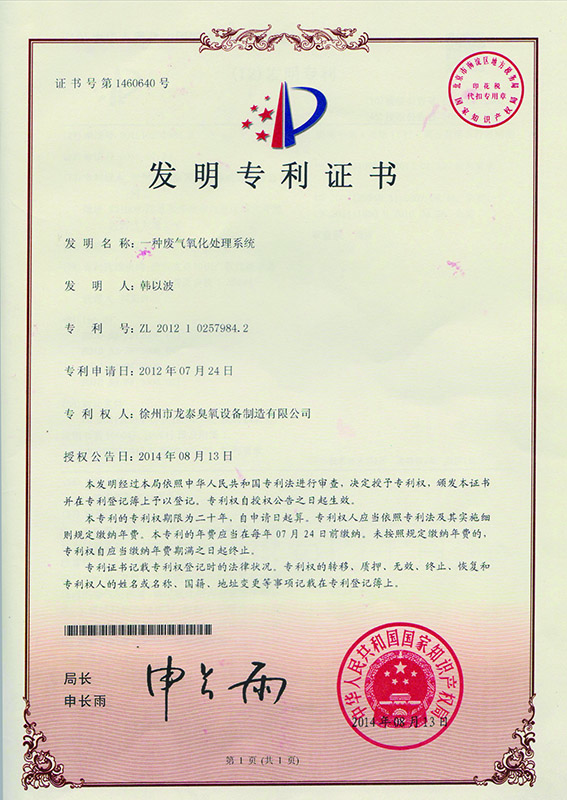 LTAOP高級(jí)氧化發(fā)明專利證書