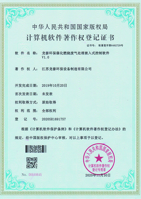 榮獲多項(xiàng)計(jì)算機(jī)軟件著作權(quán), 標(biāo)志著龍?zhí)┉h(huán)保自主知識(shí)產(chǎn)權(quán) 建設(shè)新突破。
