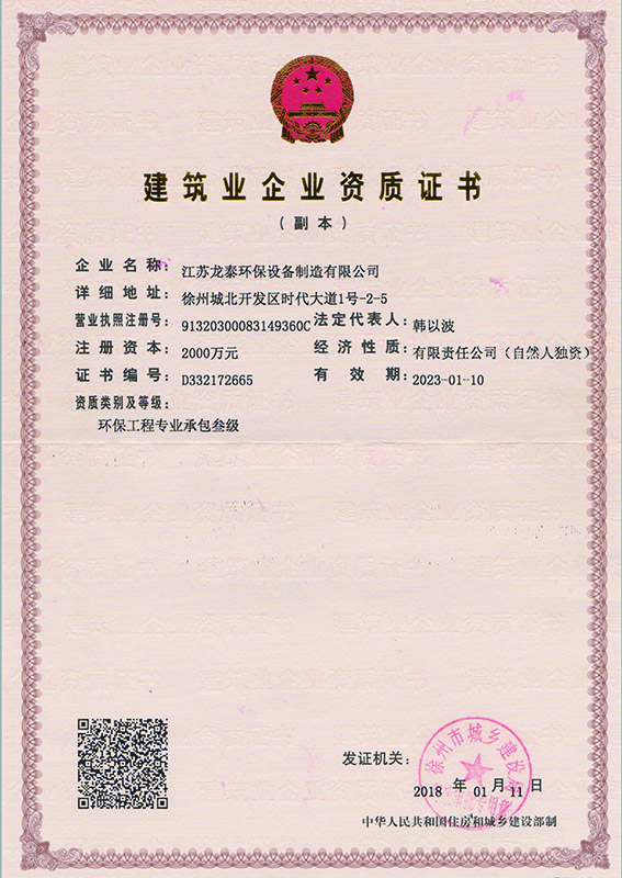 榮獲建筑業(yè)環(huán)保施工資質(zhì)、安全生產(chǎn)許 可證,增加企業(yè)核心競爭力。