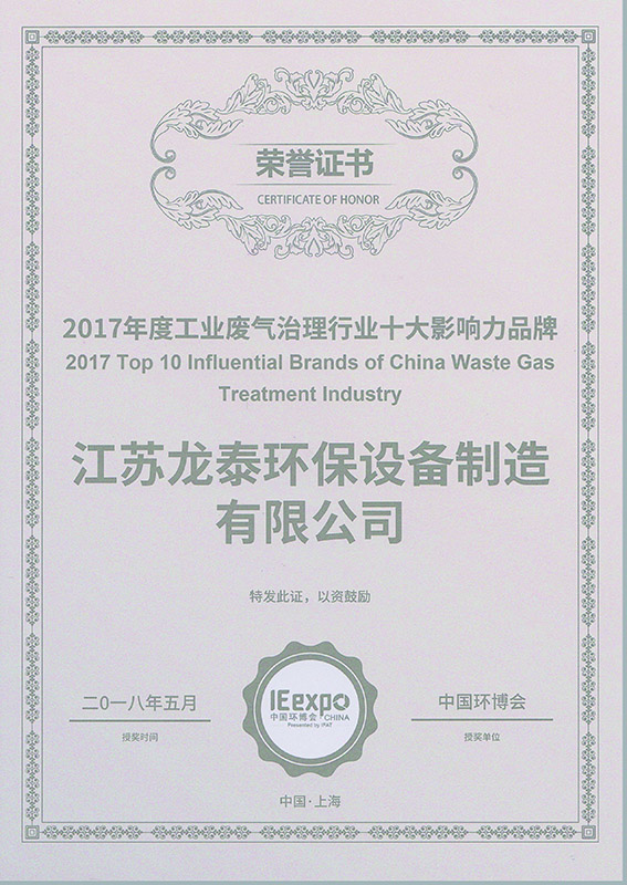 公司先后獲得工業(yè)廢氣治理行業(yè)十大影響力品牌、大氣污染防治工程設(shè)計(jì)資質(zhì)、