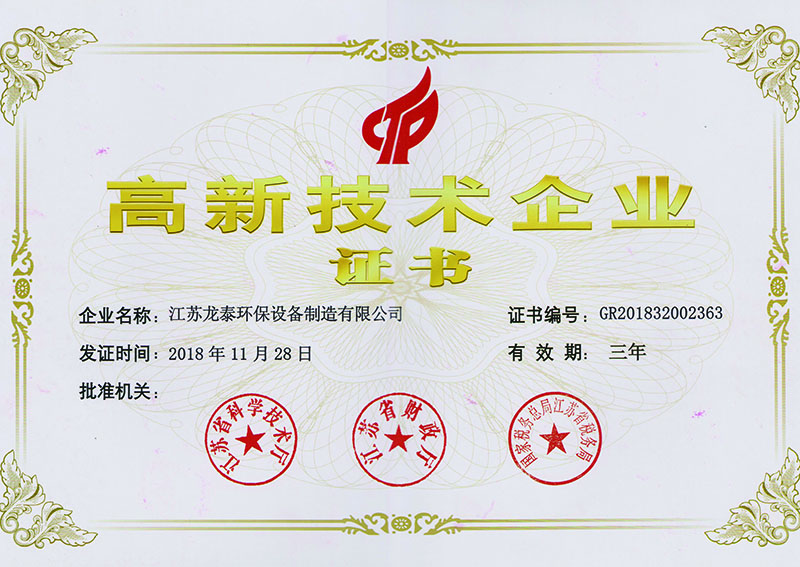 全新里程碑!龍?zhí)┉h(huán)保榮獲 “國家高新技術(shù)企業(yè)”認(rèn)證