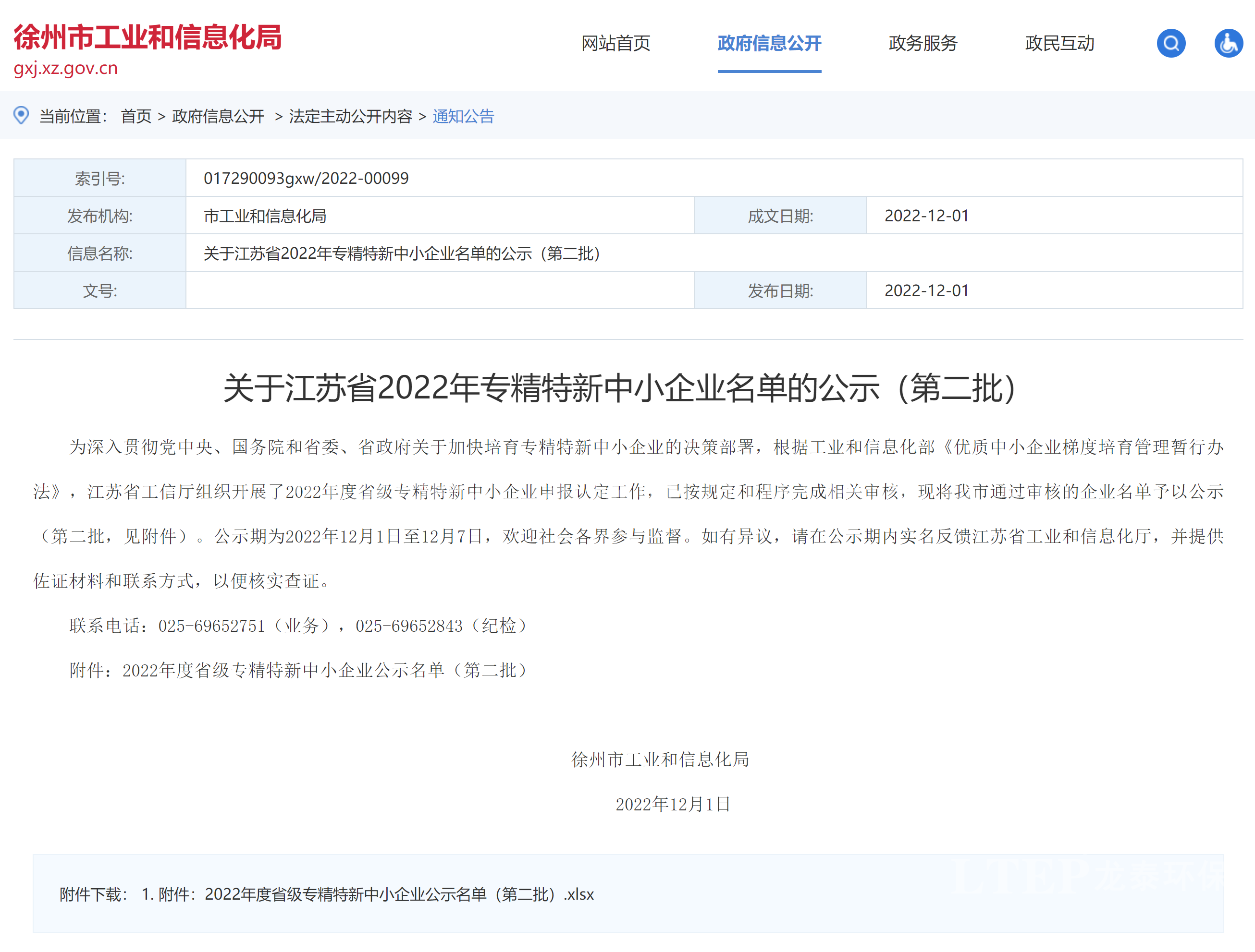 喜報!龍?zhí)┉h(huán)保獲批江蘇省2022年專精特新中小企業(yè)